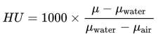 After using those method, each voxel which is made by a pixel in volume is normalised with Hounsfield unit against the attenuation coefficient of water. (7)