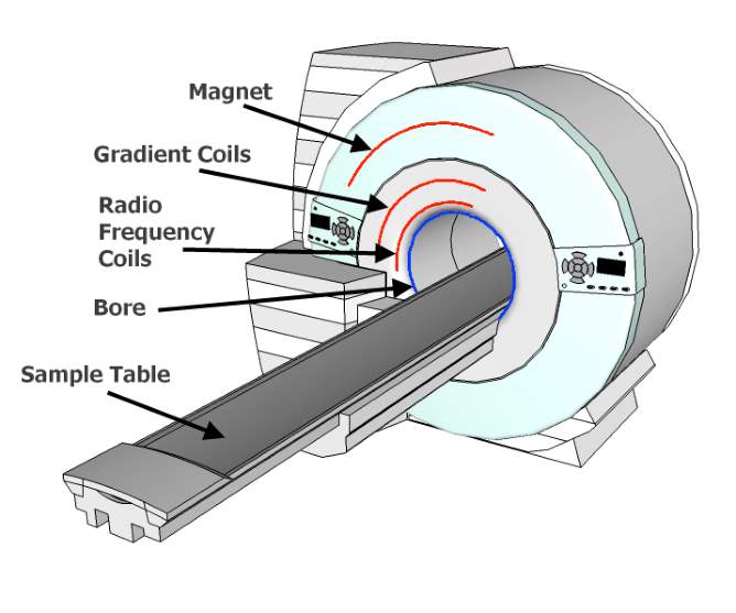 Radiofrequency (RF) coils: These coils are responsible for the transmission of RF pulses into a patient and receiving RF pulses from the patient in the form of signal echoes. There are different types including surface coil, birdcage and body coil.