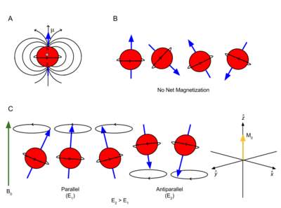 When a body is placed in a strong magnetic field (MF), all hydrogen atoms align with MF either parallel or anti-parallel. Each hydrogen nucleus rotates on its axis and MF producing a secondary rotation at Larmor frequency as well, which is known as precession motion. (10)