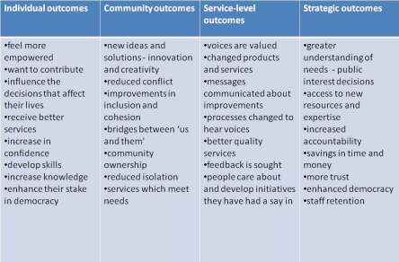 - “Making sure people and communities are genuinely engaged in the decisions made on public services which affect them; allied to