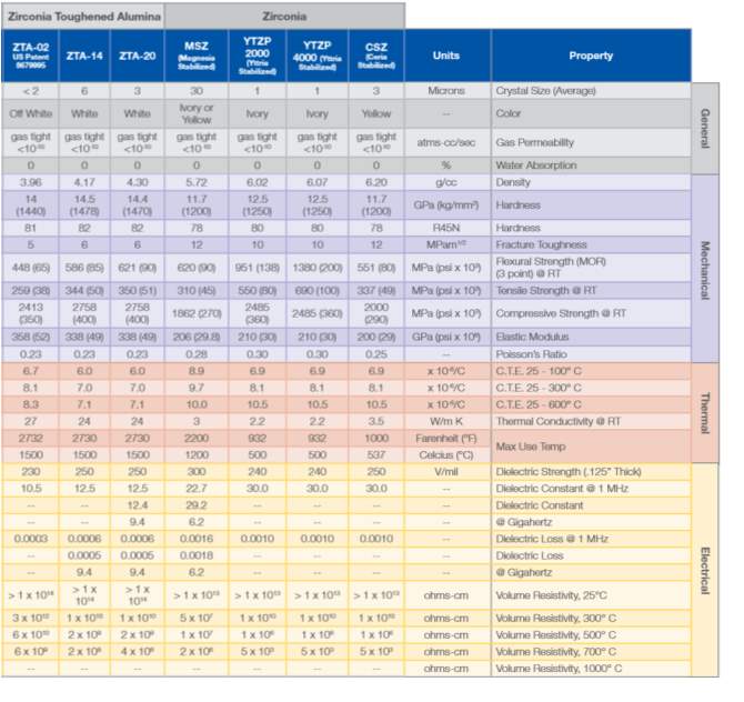 - Superior Technical Ceramics “Materials Property Chart” Superior Technical Ceramics 2018